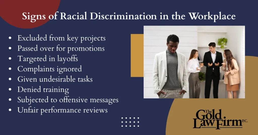 - You are physically segregated or isolated from other employees of a different race, or you are excluded from activities that involve customer contact while employees of a different race are included.